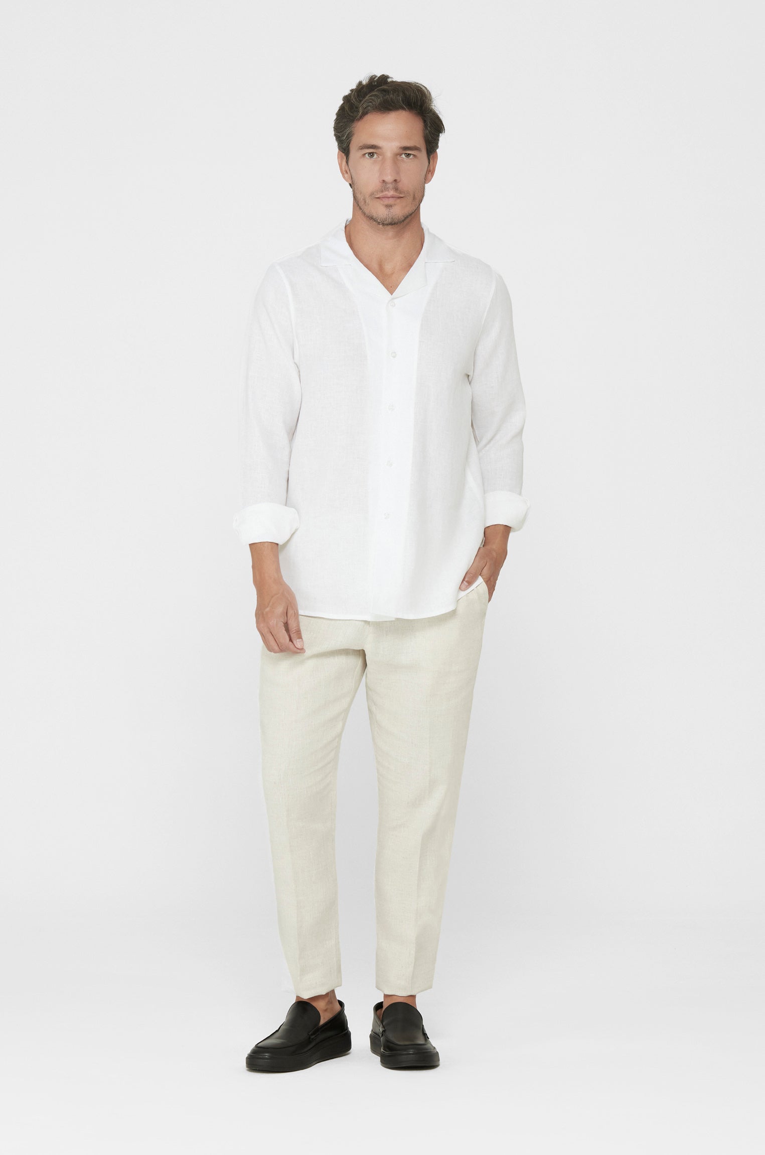 Introducing our interpretation of the Cuban-collar shirt, redefining the classic with elegance and authenticity. With reimagined collar proportions and a distinctive refinement within a minimalist design, this piece reaches new heights of style. Crafted from premium pure linen, the shirt offers exceptional comfort and freshness, making it ideal for facing the high tropical temperatures.